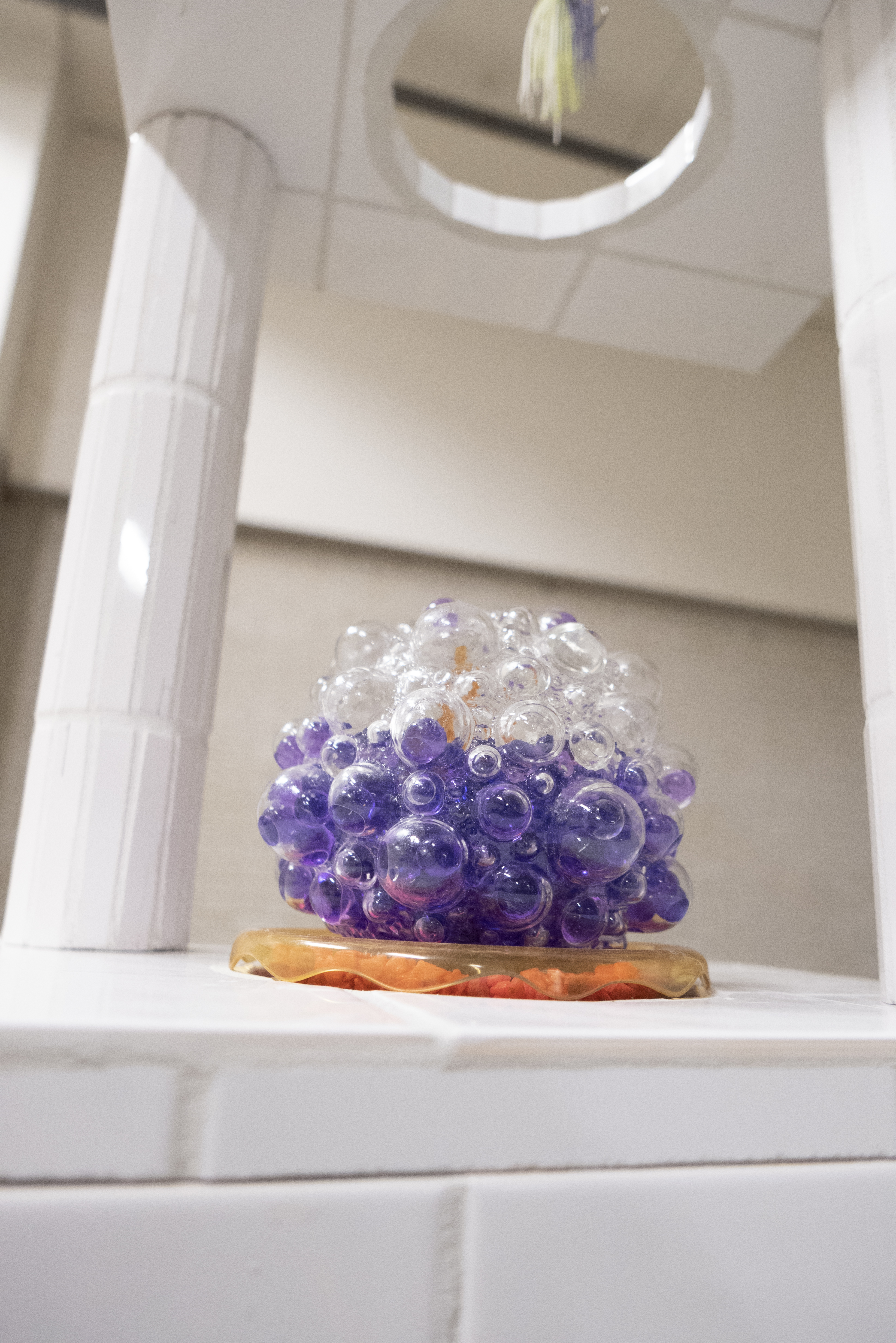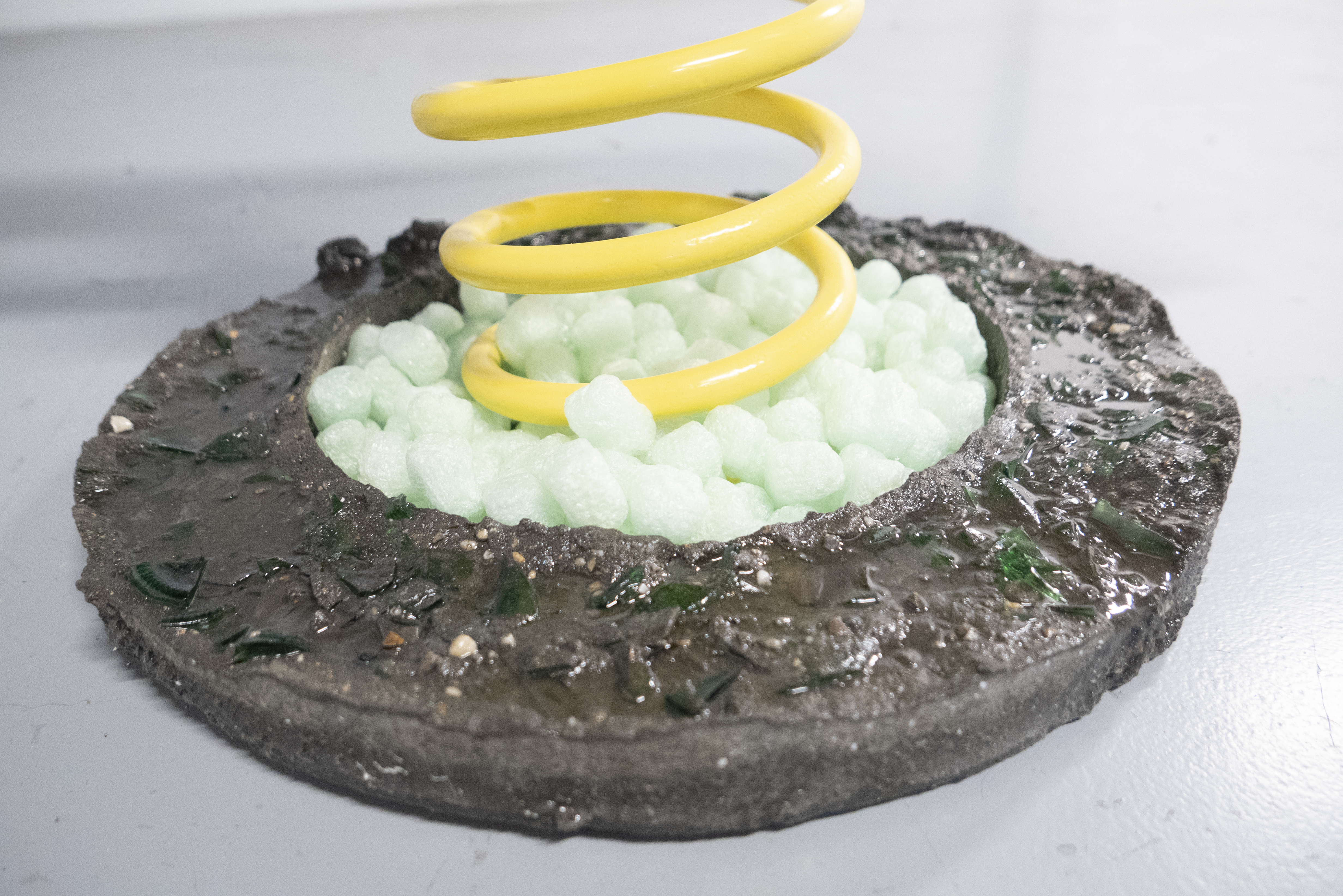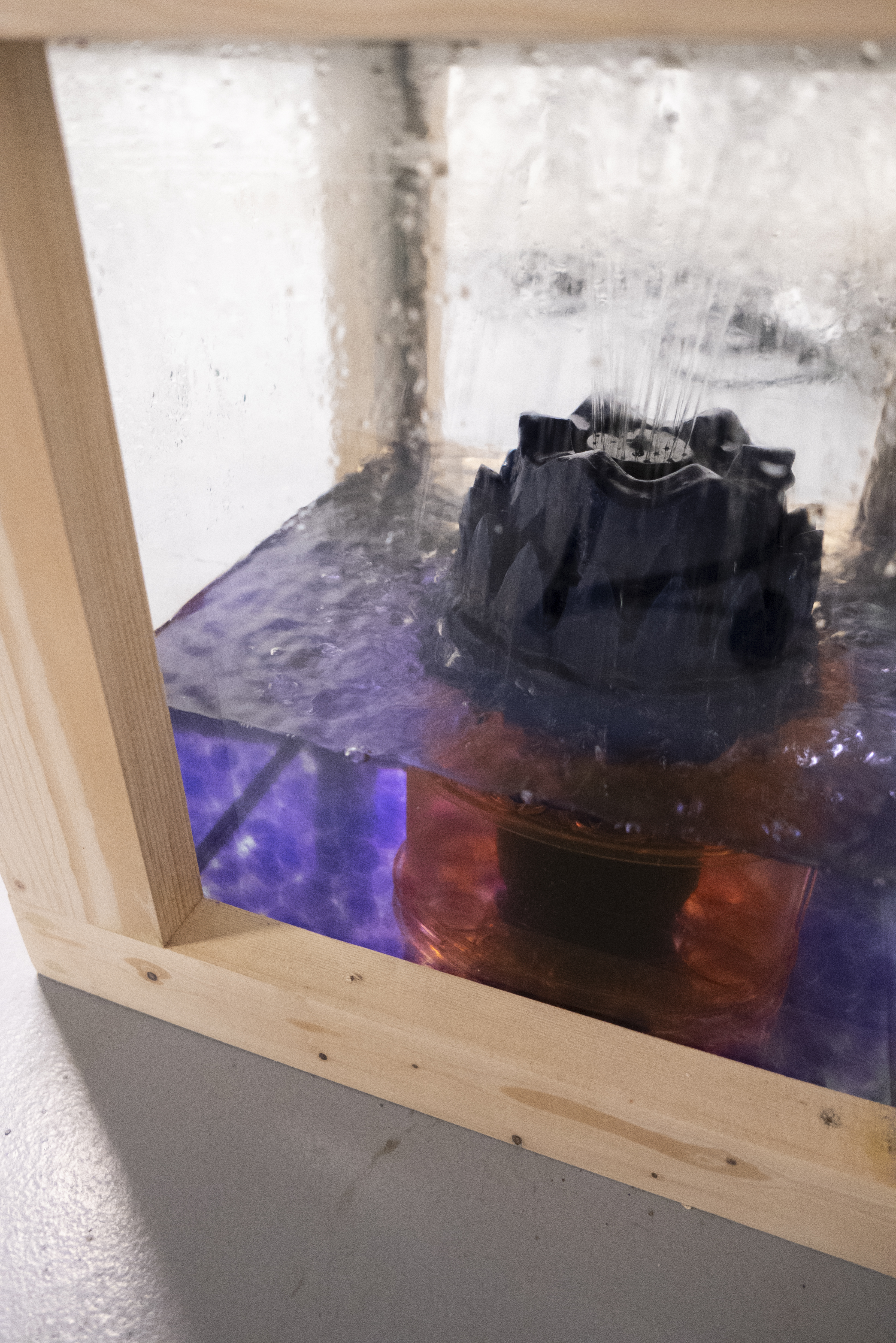 Tiles, epoxy, aquarium plants, artificial maggots, fake gold chains, steam device