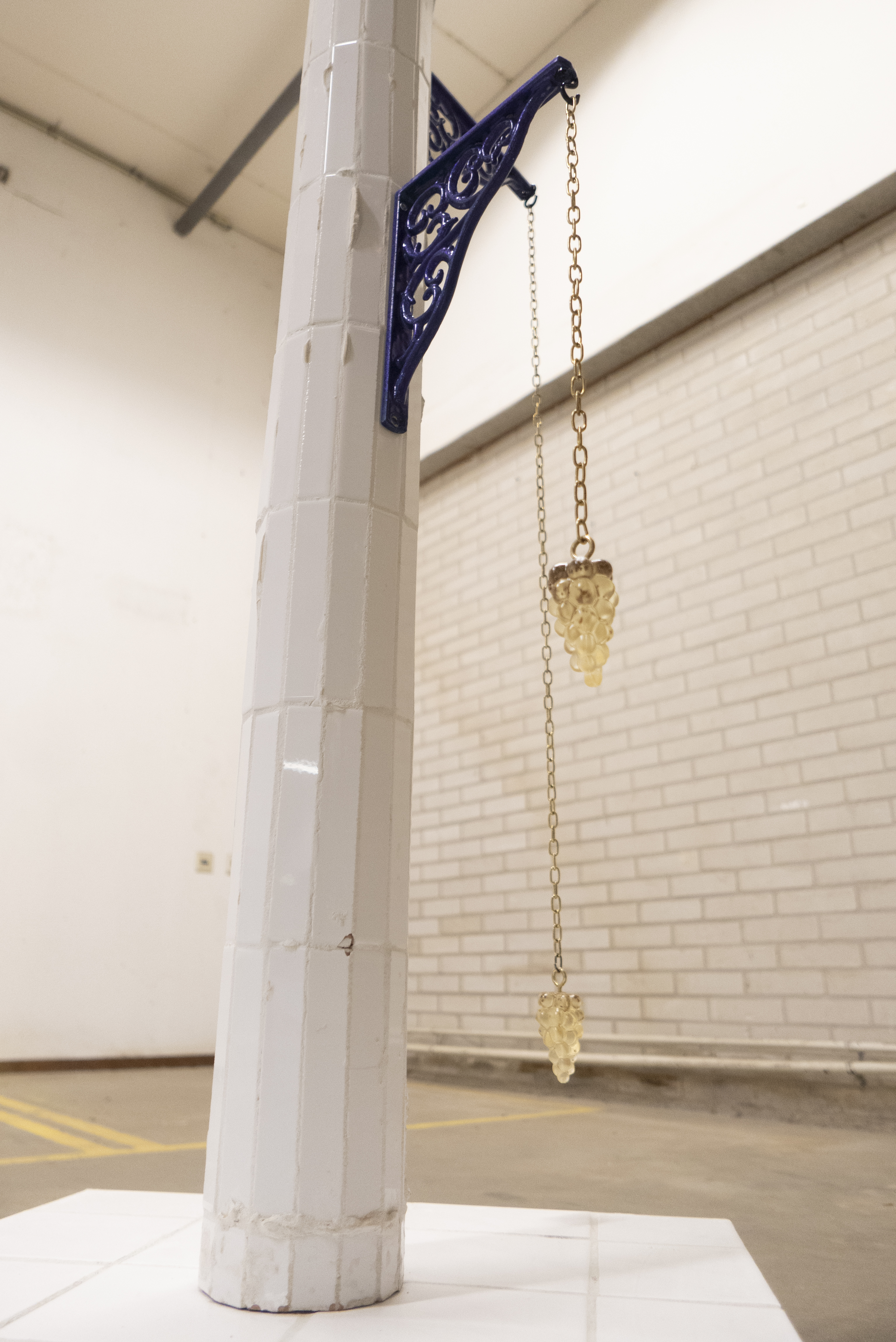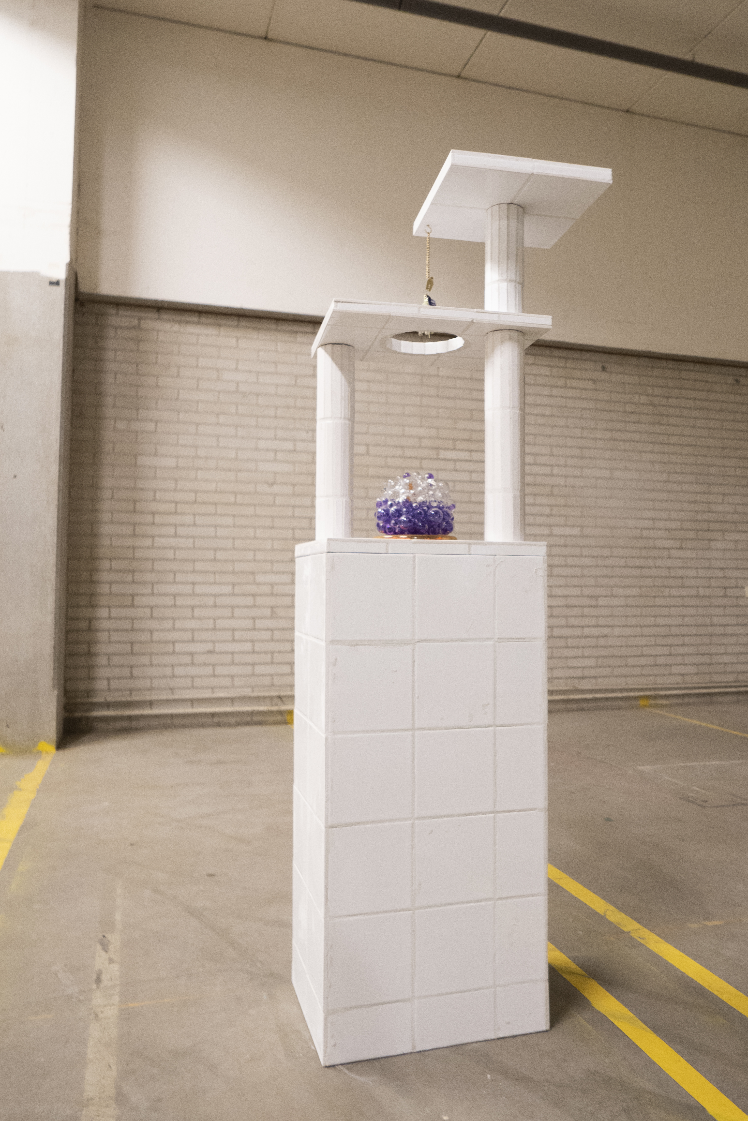 Tiles, concrete, steel, shelf brackets, epoxy, fruit flies